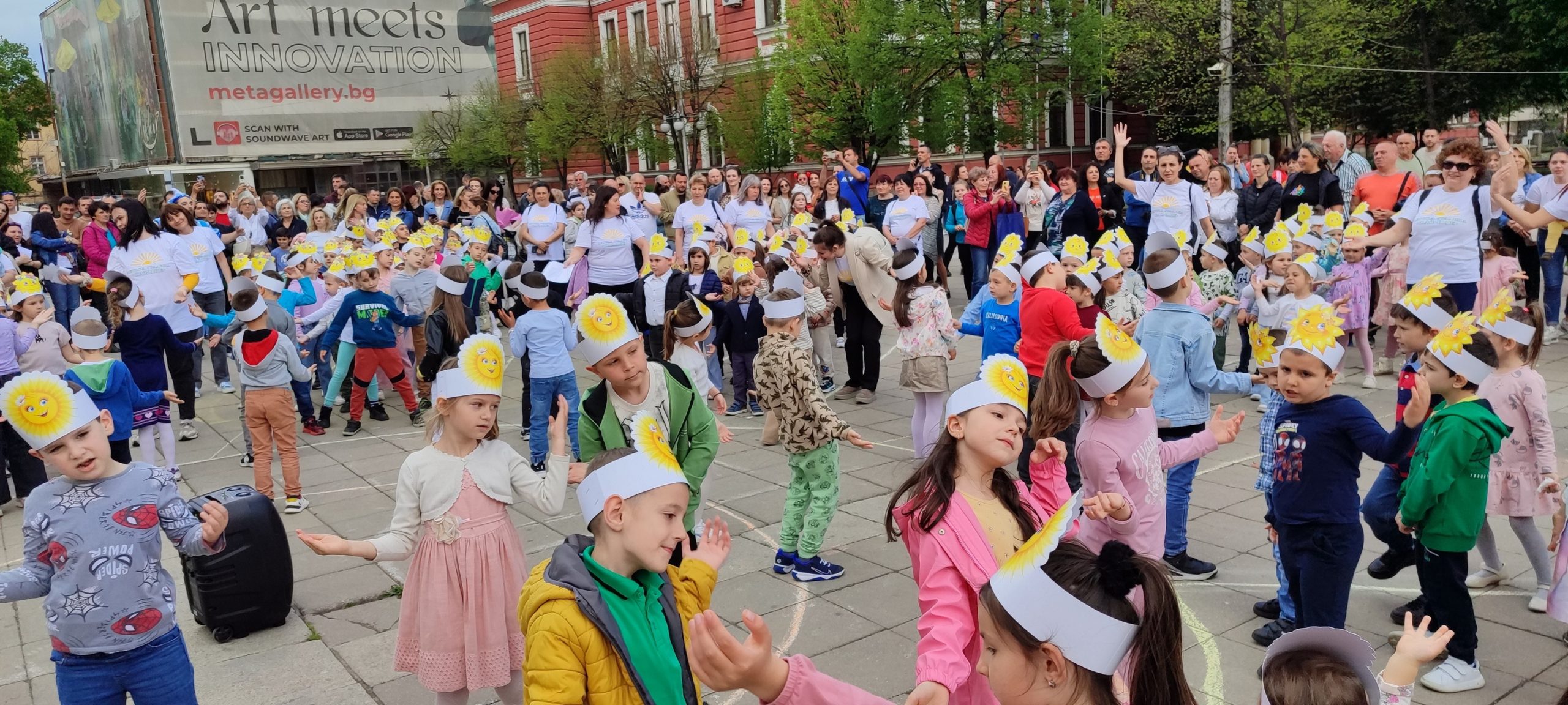 Децата поздравиха присъстващите с кратка празнична програма, изпълнена с песни и танци, обединени от символиката на слънцето – емблема на детската градина. Върху живописния площад „Велбъжд“ малките участници оформиха жива картина във формата на слънце. Финалът на събитието бе повече от запомнящ се – децата запечатаха своите мечти в капсула на времето, която ще пази светлите им послания за бъдещето.