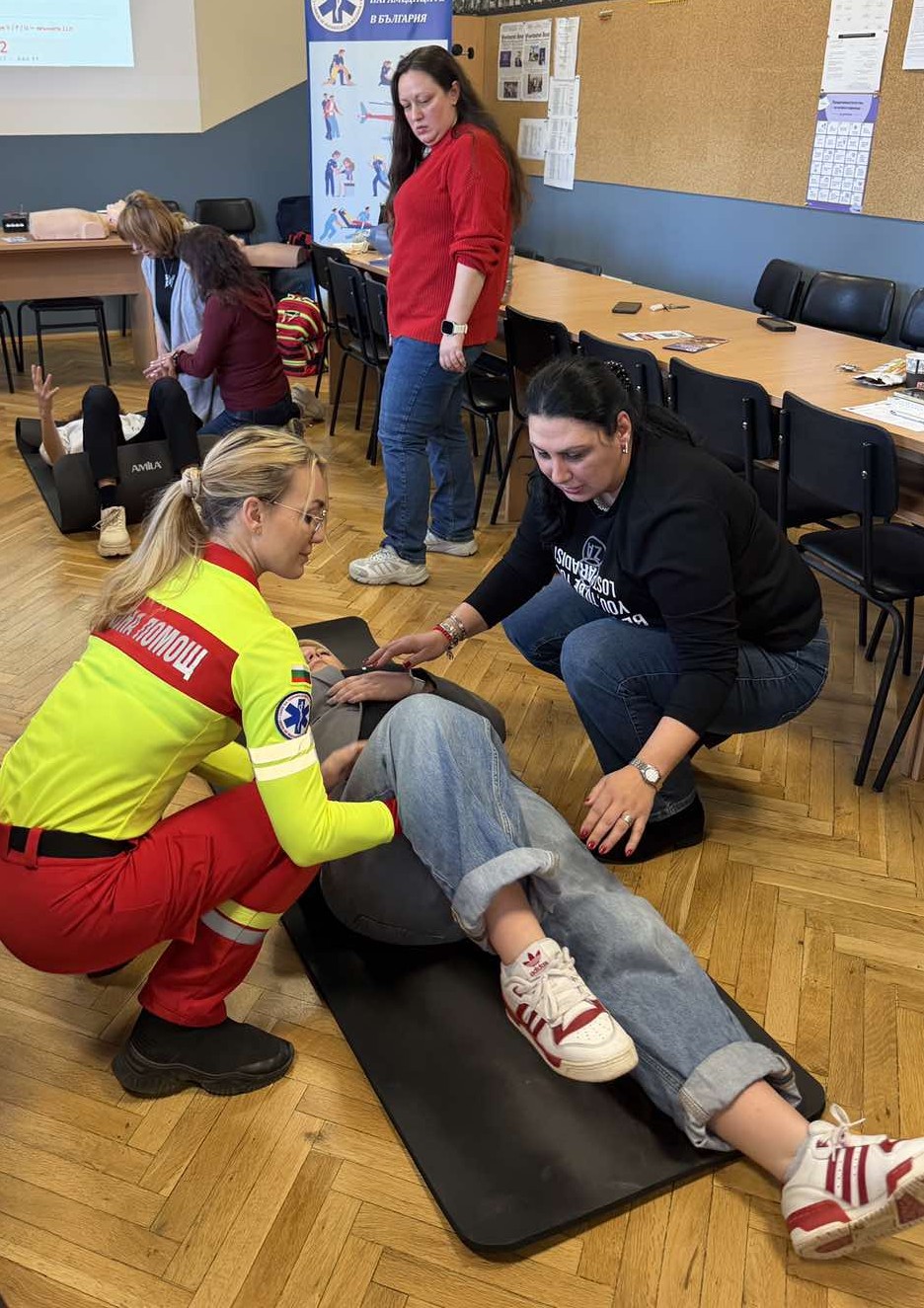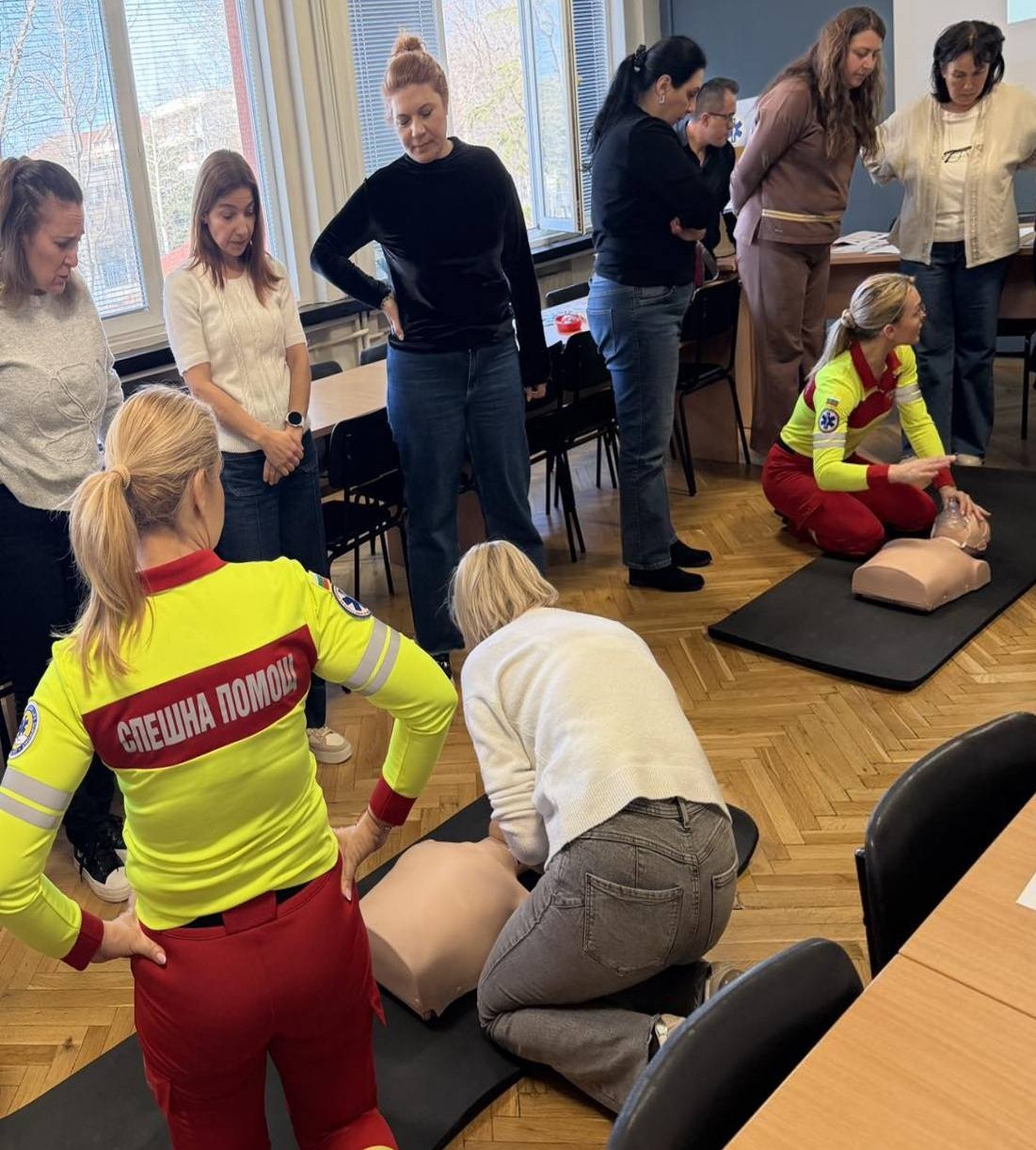 Инструктори от страна на Съюза на парамедиците бяха председателят му Ива Пехливанска и Аксиния Николова.