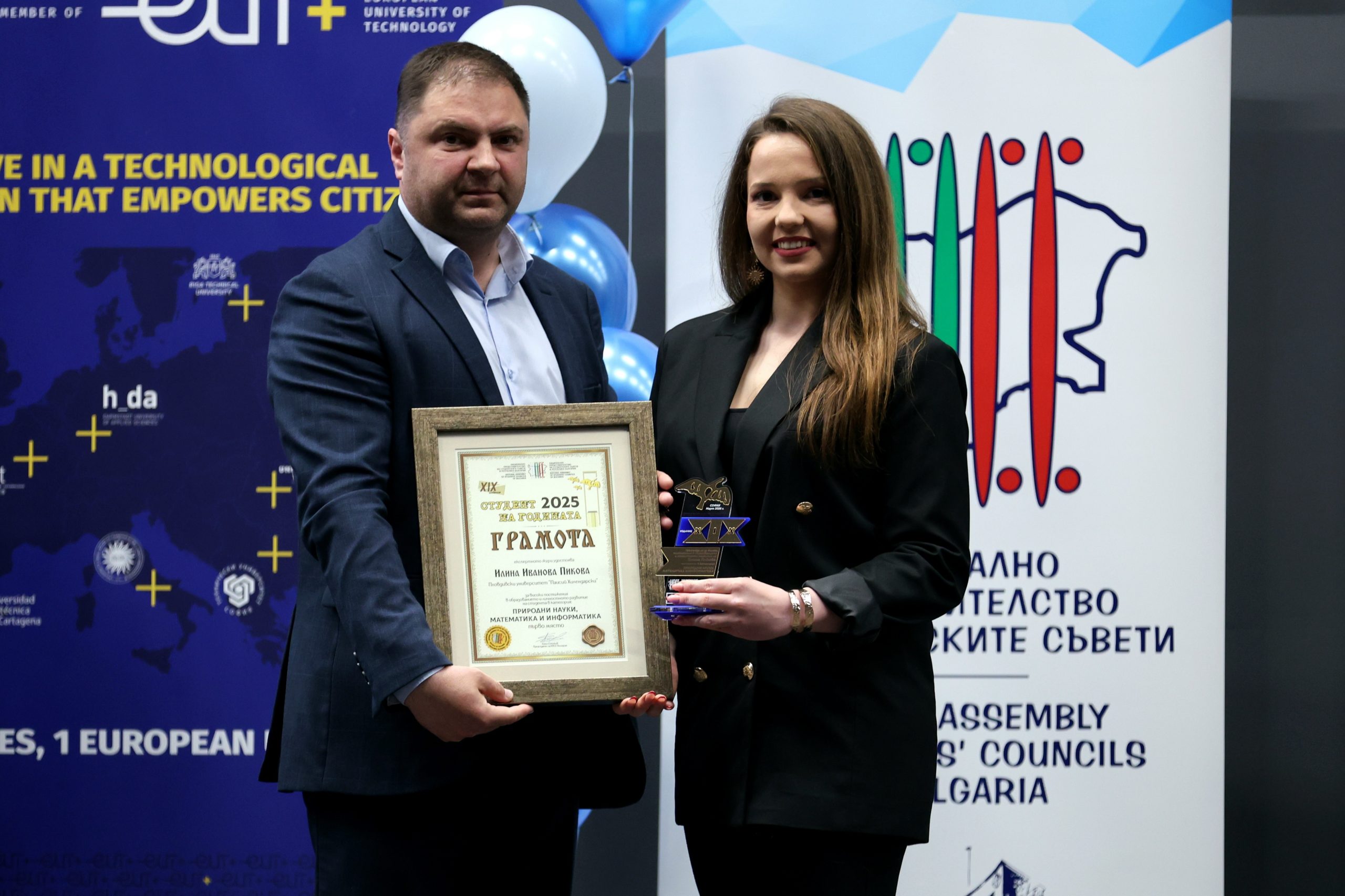 Министърът на образованието и науката проф. Сергей Игнатов и председателят на Националното представителство на студентските съвети Ангел Стойков връчиха Голямата награда „Студент на годината“ на бъдещия архитект Ивана Дилянова – студент в V курс в Университета по архитектура, строителство и геодезия, специалност „Архитектура“.