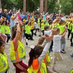 За финал всички заедно се хванаха за ръце и изобразиха огромно сърце в двора на училището.