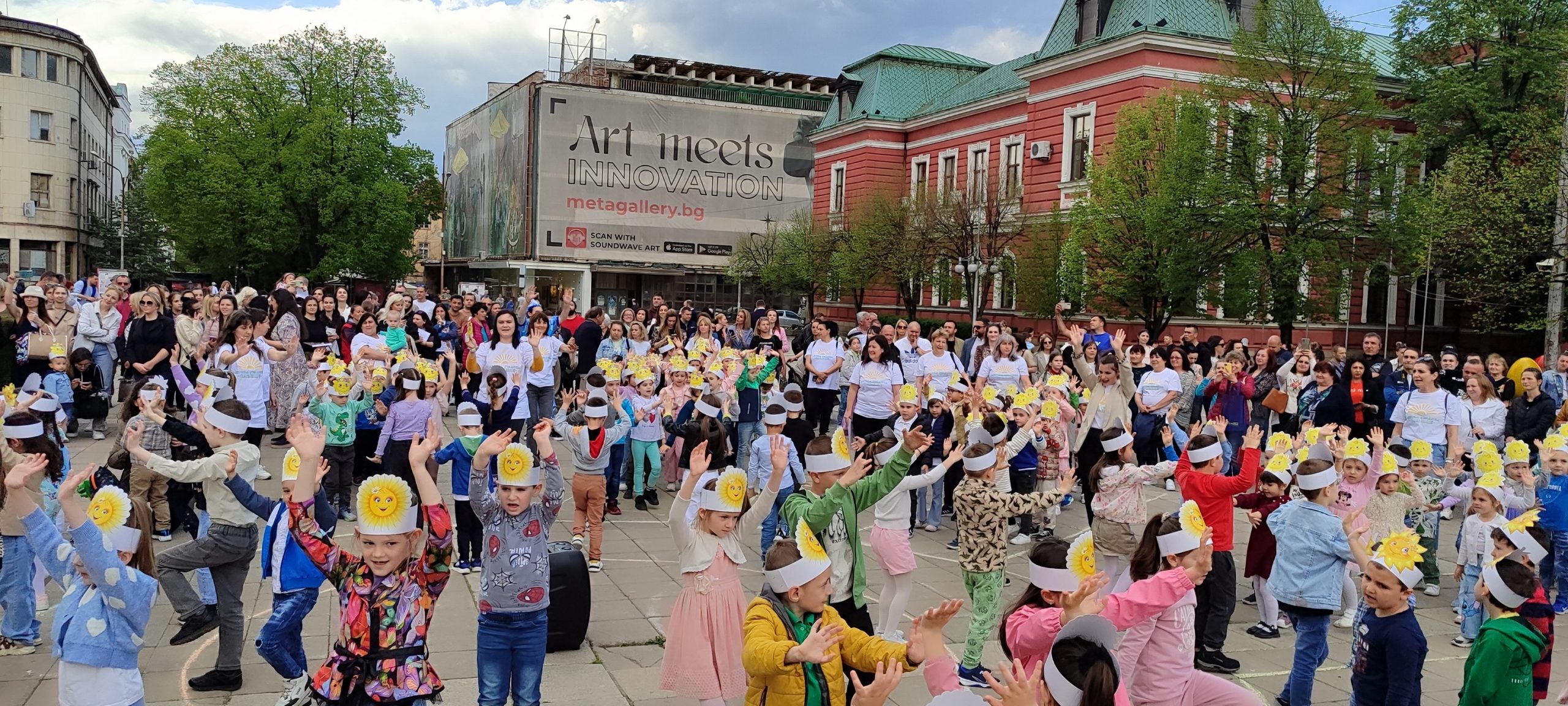 Децата поздравиха присъстващите с кратка празнична програма, изпълнена с песни и танци, обединени от символиката на слънцето – емблема на детската градина. Върху живописния площад „Велбъжд“ малките участници оформиха жива картина във формата на слънце. Финалът на събитието бе повече от запомнящ се – децата запечатаха своите мечти в капсула на времето, която ще пази светлите им послания за бъдещето.