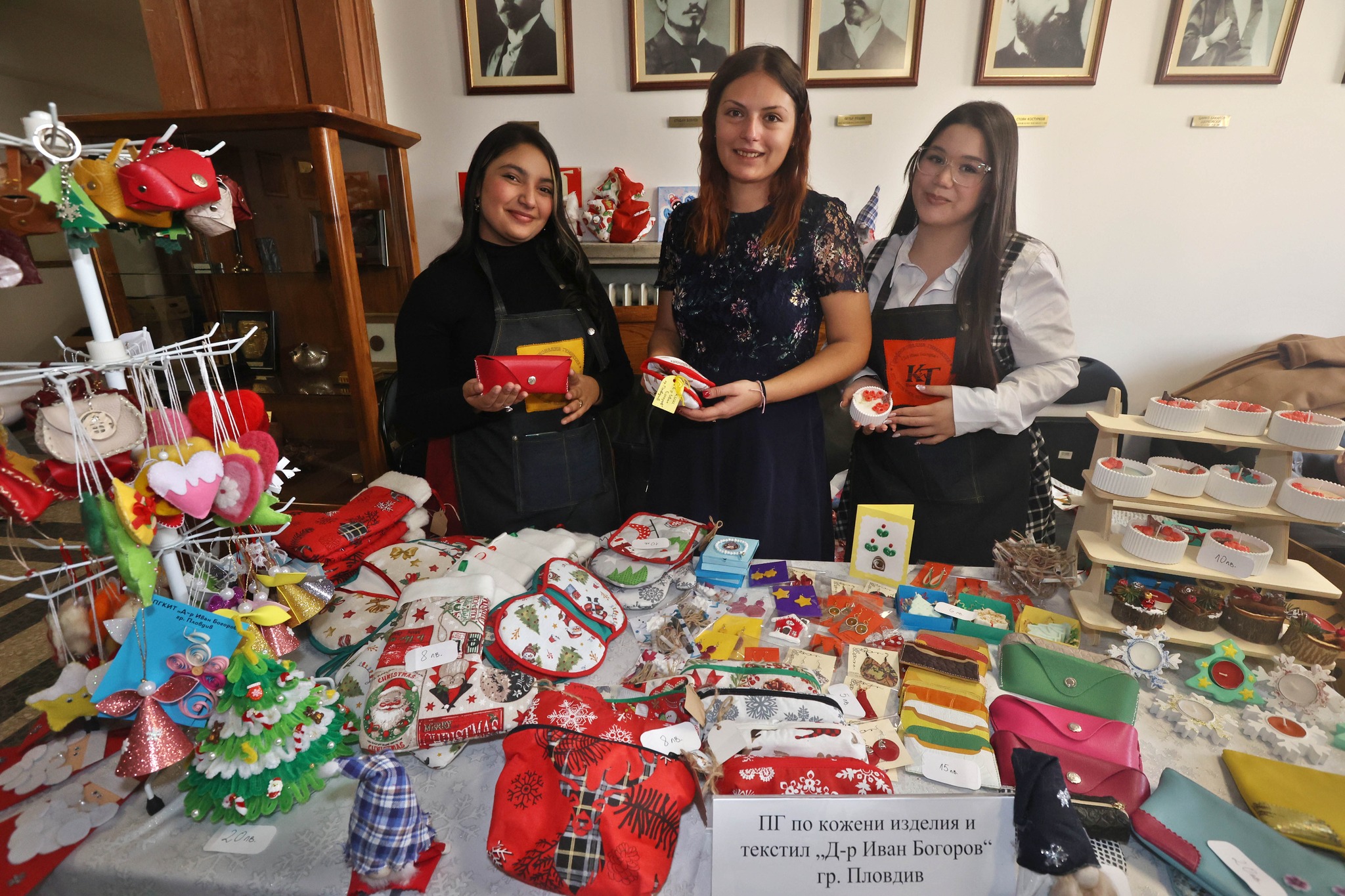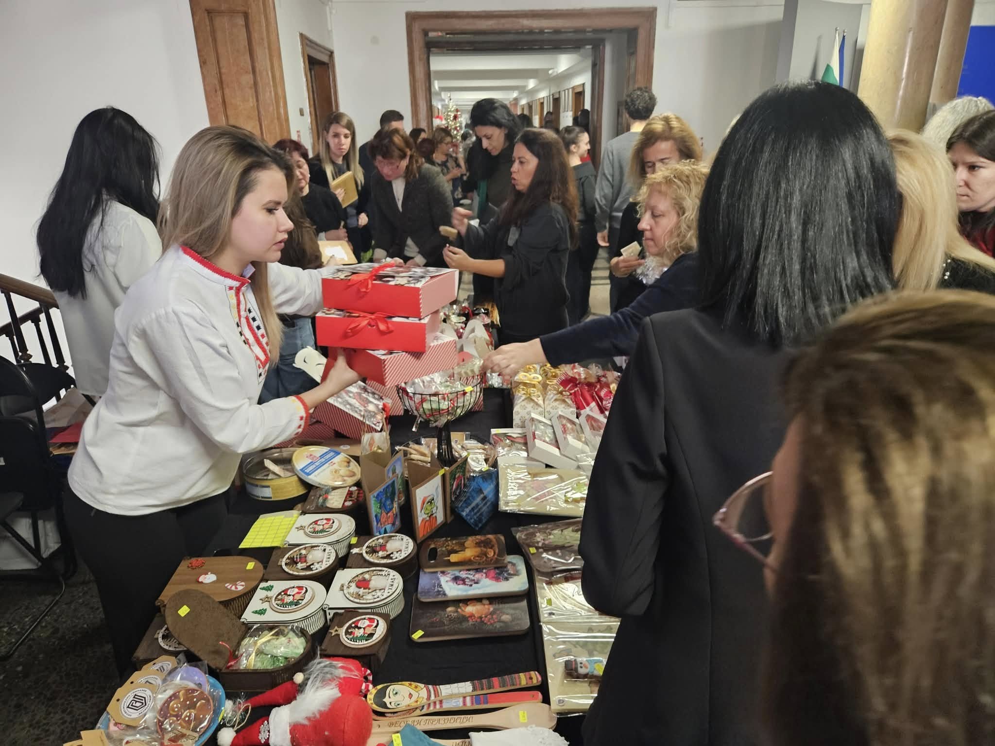 Ръчно изработени сладки, шоколади, бисквитки и други лакомства и печива, коледни свещници, картички, сувенири, сурвачки, дървени дъски за рязане, натурална козметика и още много най-различни продукти, дело на ученици от 13 гимназии, бяха изложени на Коледния базар на професионалните умения в Министерството на образованието и науката.