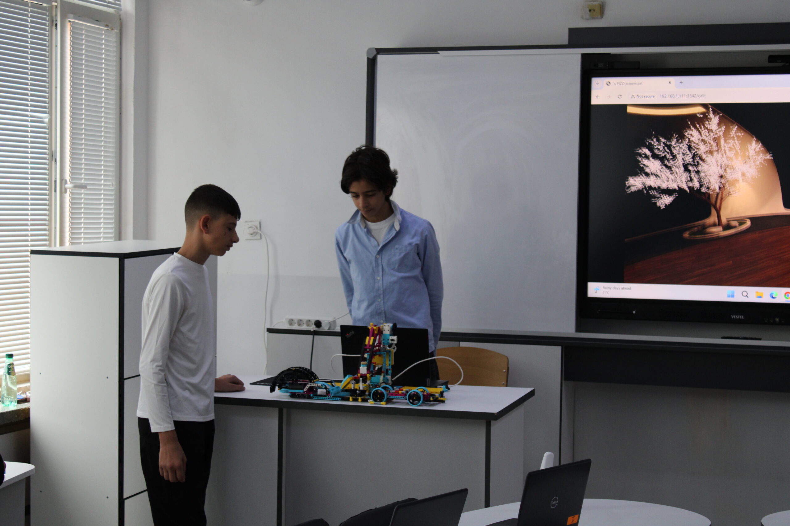 Деветокласници представиха специално създадения от тях уебсайт за STEM обучение с вграден AI асистент „Седмобот“. За уменията си в програмирането те бяха отличени с грамоти и награди.
