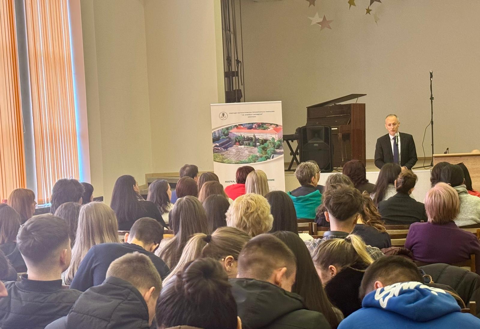„Поздравления за вашите резултати и постижения, както и за усилията на общината и на всички, които подкрепят училищата. Това е една от най-важните обществени мисии – да направим децата знаещи, можещи и добри хора и да им дадем възможност за житейска и професионална реализация в бъдеще“, заяви Вълчев. Той отбеляза и усилията на учителите и училището да привличат все повече ученици към обучението по математика и природни науки – области, в които образователната система все още среща предизвикателства.